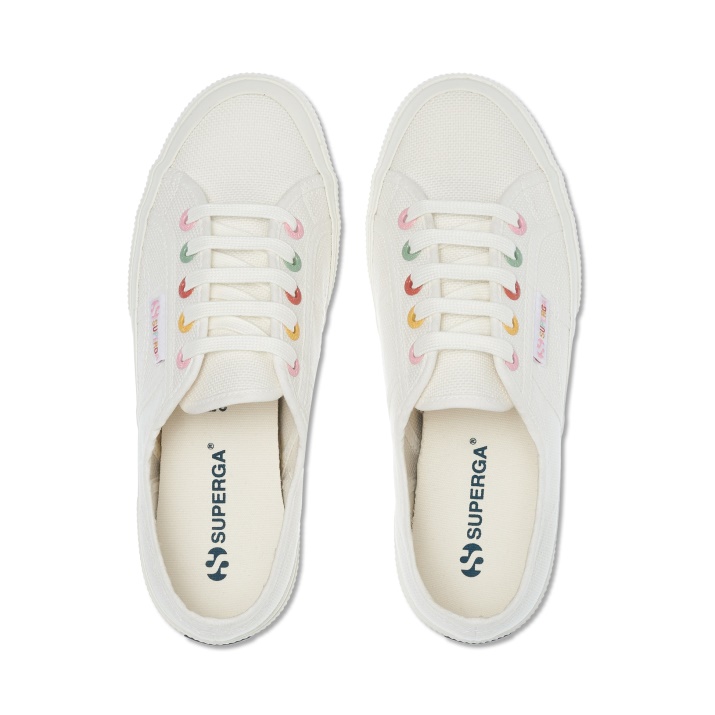 Classic Superga 2750: Calzado Deportivo De Lona Para Mujer Con Parte Superior Sin Forro De Puro Algodón Extrafuerte Y Totalmente Transpirable. Suela De Caucho Natural Vulcanizado. Ojales Y Etiqueta En Los Colores Del Arcoíris.
